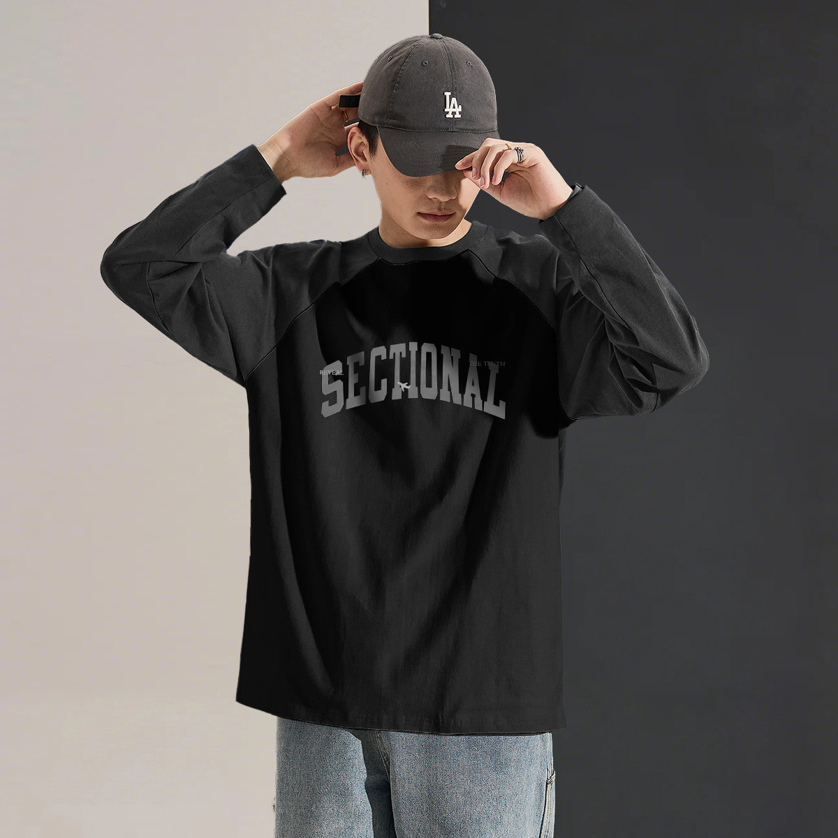 Long-sleeved T-shirt Men’s Autumn Men’s Long-sleeved T-shirt Top Men’s Round Neck Front Chest Text Printed Raglan Sleeve T-shirt