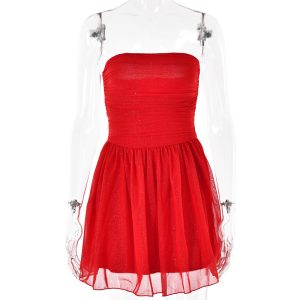 Hot-selling new dress Sexy and trendy mesh splicing bateau neck tube topwomen’s back short skirt