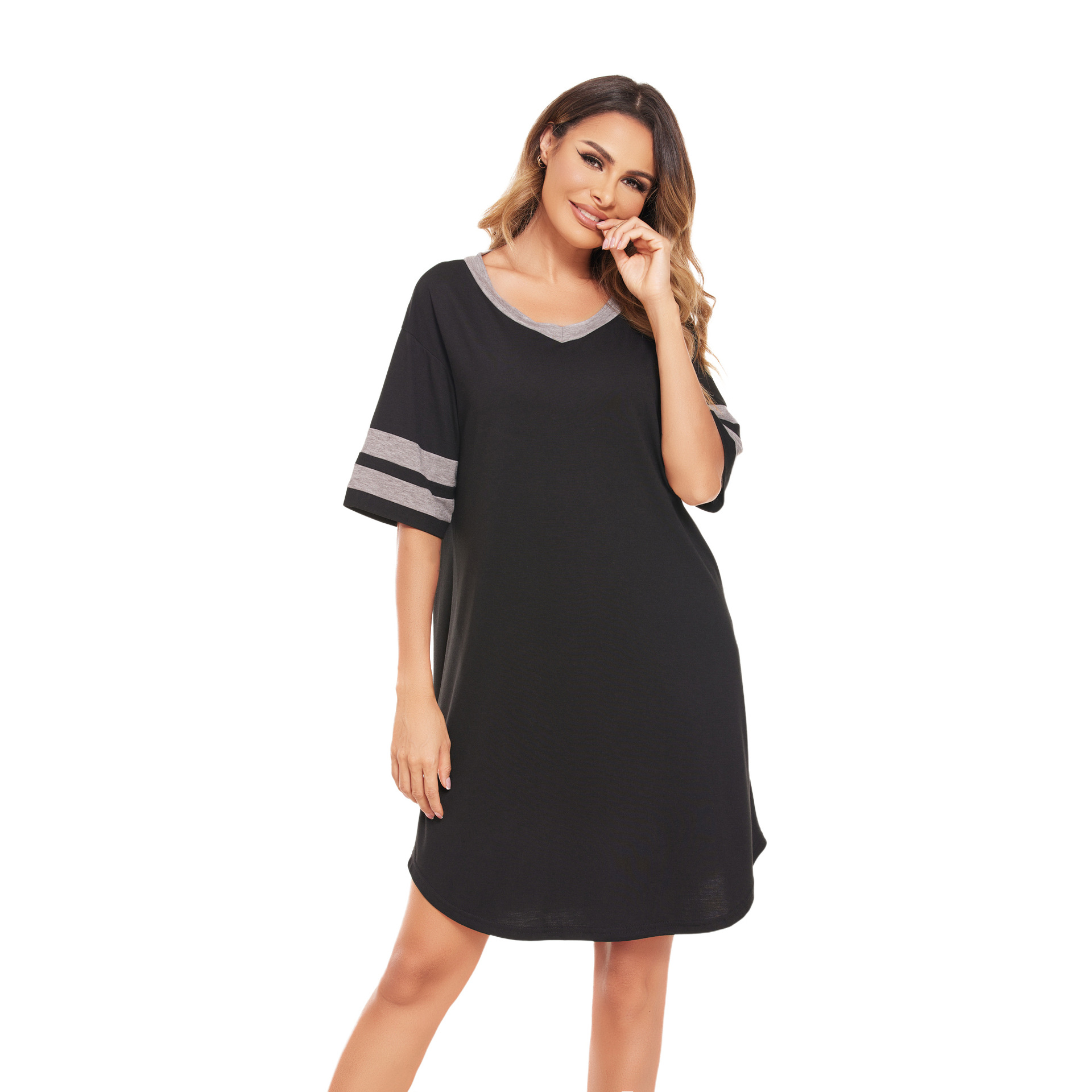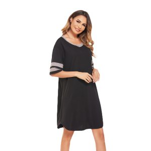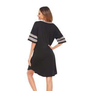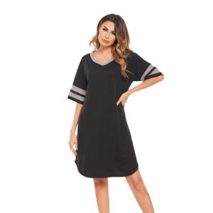 Dress with contrasting stripes and colorful cotton mid-length nightgown