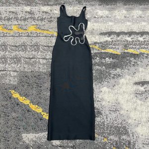 Black sexy sleeveless square neck mesh see-through luxury diamond socialite bandage long skirt Fabric name: Nylon Pattern: solid color Craftsmanship: […]